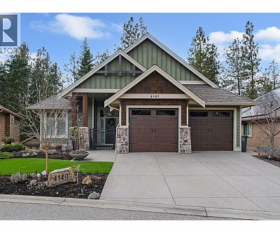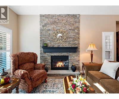 *OPEN HOUSE SAT OCT 18, 12-2*Welcome to 3992 Gallaghers Parkway in the prestigious Gallaghers Canyon Golf Resort. This classic Torrey Pines floor plan in the premier ""Canyon Community"" is true functional living. With soaring ceilings, expansive windows, and ultimate privacy, the home seamlessly blends indoor elegance with outdoor living. The sunny patio with motorized awnings and upgraded landscaping provides a serene retreat on a green belt and is a short walk to the Scenic Canyon Regional Park trails. Inside, the recent renovation has had no detail overlooked—custom maple cabinetry, Cambria quartz countertops, NZ wool carpet and imported travertine tile flow throughout. The gourmet kitchen features premium appliances, wine fridge, and a walk in pantry, while the family room & great room each boast stone fireplaces and designer lighting. The luxurious primary suite offers a spa-inspired ensuite with heated floors, freestanding tub, dual vanities, and frameless glass, rain shower. Additional highlights include a unique, dedicated media room (or 3rd bed) with 92” screen and surround sound speakers that will take movie night to the next level! Some mechanical updates include a new furnace/AC, hot water tank and roof in 2018 and the home offers an oversized garage plus a crawl space for ample storage. Gallaghers’ amenities include an indoor pool, fitness centre, tennis, and vibrant social scene—this residence offers the best of resort-style living in one of Kelowna’s most desirable communities.*Seller will pay strata fees until May 31/2026* (id:6770)