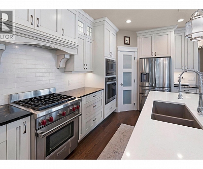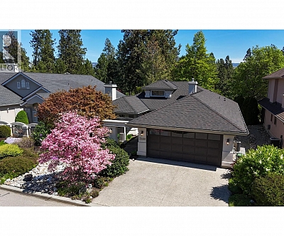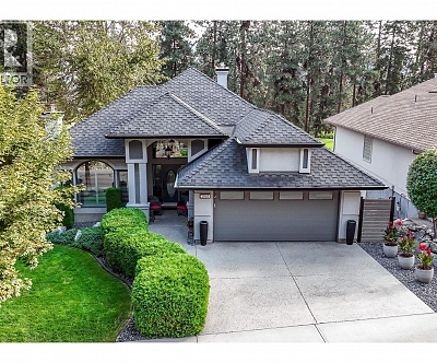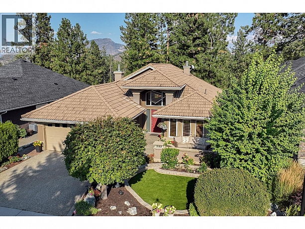 Discover the finer life in this beautifully updated home, nestled in one of Kelowna’s most sought-after enclaves, surrounded by exciting amenities. The main living space welcomes you with soaring vaulted ceilings and a breathtaking fireplace, perfectly framed by a statement feature window. The chef’s kitchen is a showstopper, complete with quartz backsplash, waterfall edge countertops, stainless steel appliances, and eat-at island with ample storage and prep space. Modern finishes shine throughout with new flooring and fresh paint, adding to the sleek and sophisticated feel. The main floor features a spacious primary with deck access, updated 5-piece ensuite, and a large walk-in closet. Upstairs, you’ll find a second bedroom and a bedroom-sized den. Step outside to a private deck surrounded by greenery, perfect for outdoor entertaining and relaxation. Downstairs, a bright 2-bed self contained in-law suite with a new kitchen and separate entrance offers flexibility, easily convertible into a summer kitchen & hosting space with a games/media room. The exterior is freshly landscaped & wired for security, while the tranquil backyard oasis features a fish pond and wiring for a hot tub. Enjoy a 2 car garage that also has room for your golf cart! Located in the vibrant Gallaghers Canyon Golf Community which offers top-notch amenities like a gym, pool/spa, games room, library, workshops, fitness classes, social clubs, tennis courts and more. This exceptional home is waiting for you. (id:6770)