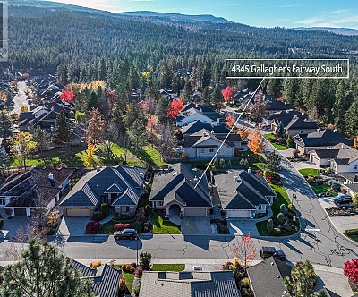 Welcome to 4345 Gallaghers Fairway S! This This elegant 2 Bed + Den Rancher has been meticulously cared for and updated and offers the ultimate in lifestyle in Kelowna's exclusive Gallaghers Canyon community. In the Foyer you are greeted by high, vaulted ceilings through to the living room with cozy gas fireplace. Spacious kitchen with wall oven and electric cooktop. Breakfast bar at the counter as well as space for full dining suite leading out to the patio. The King-sized primary suite features a large walk-in closet and 5 piece spa-like ensuite bathroom. A spacious 2nd Bedroom, Den, Main Bath and Laundry room complete this beautiful home. Located on a quiet, peaceful, street with walking and hiking trails nearby and backing on to a Private Strata Park. Gallagher's Canyon offers prized Golfing, Social Events, Pool, Fitness Center, Tennis, Arts and Crafts, and much more! Patterned after the very popular “Del Webb” Retirement Communities Concept throughout the US - Gallaghers is the Ultimate Okanagan Lifestyle community. “If you are Lucky Enough to live at Gallaghers - - You are Lucky Enough!” (id:6770)