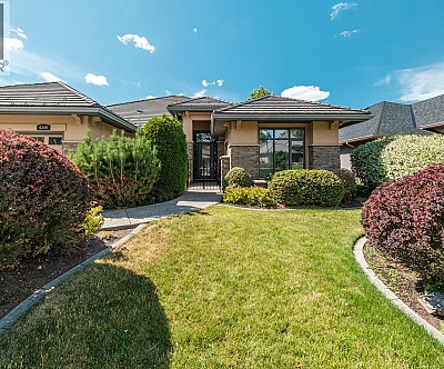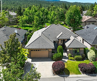 This coveted “Troon” Model is the flagship of Gallaghers Home designs offering style and quality throughout. Backing on to a Private Strata Park, this home offers exquisite privacy and beautiful Outdoor living space. The dramatic, high ceilings and expansive windows invite in south facing light to highlight the stunning finishing. Concrete Tile Roof and Acrylic Stucco ensure many years of worry free maintenance. Plenty of versatile living space with a formal Living and Dining Room as well as a cozy Family Room and Breakfast Nook. The spacious Primary Suite boasts a 5 piece spa inspired ensuite bathroom and walk-in closet. A guest room, additional full bath, den/office, and laundry room complete the floorplan. As an added bonus, there is a large, full height unfinished partial Basement space with stair access from the garage great for Storage, Workshop, Gym, or Hobby Room options. If you are a Nature Lover - you will delight at the many trail accesses just outside your door. Gallaghers Canyon is known for its vibrant lifestyle community and variety of amenities. Schedule your personal tour to see what Okanagan Living is really all about! (id:6770)