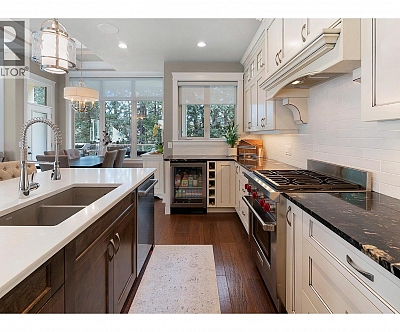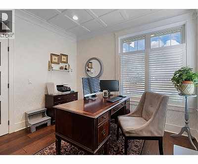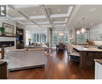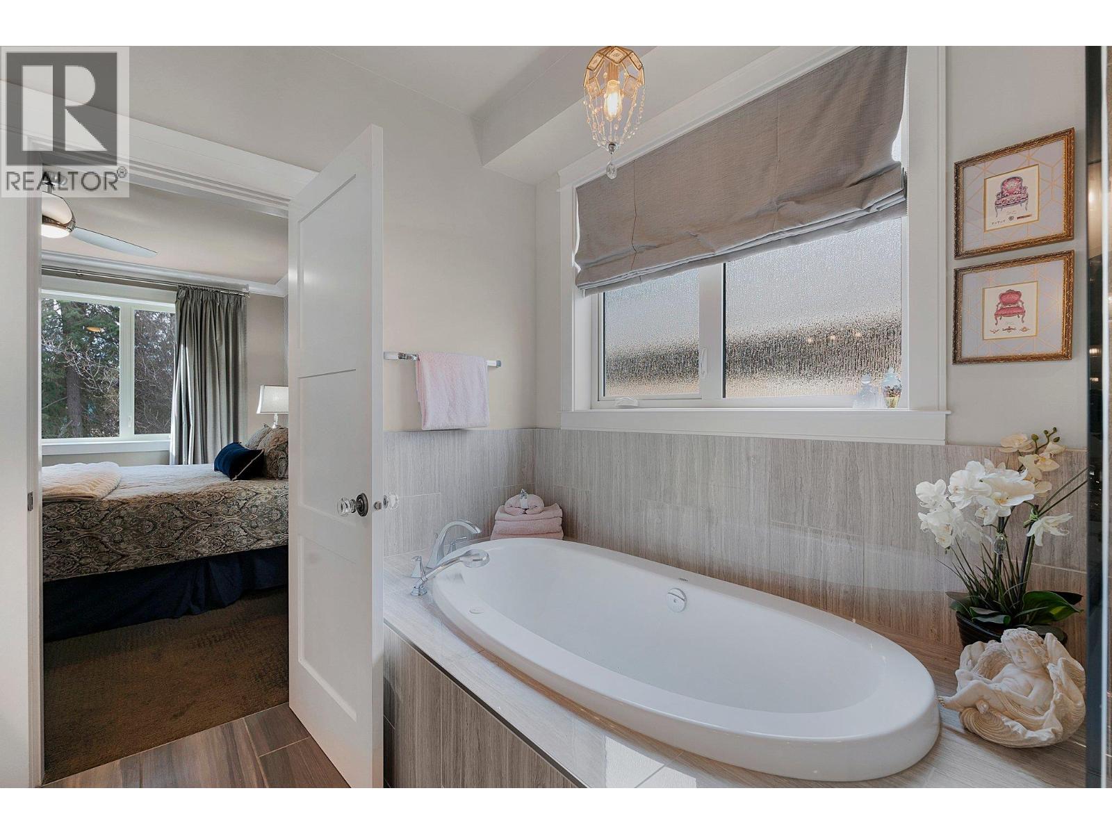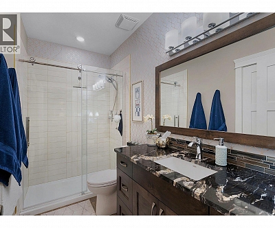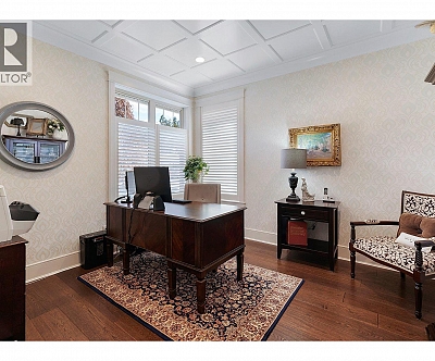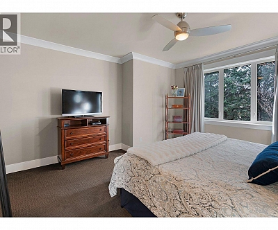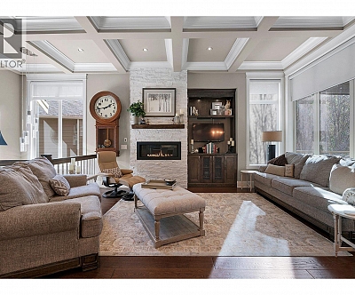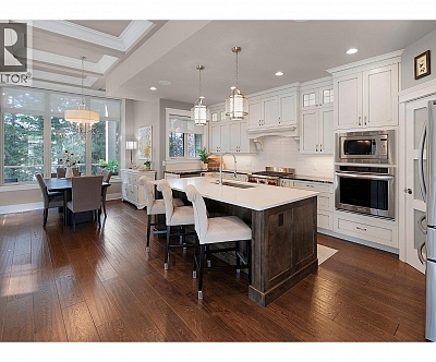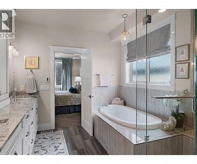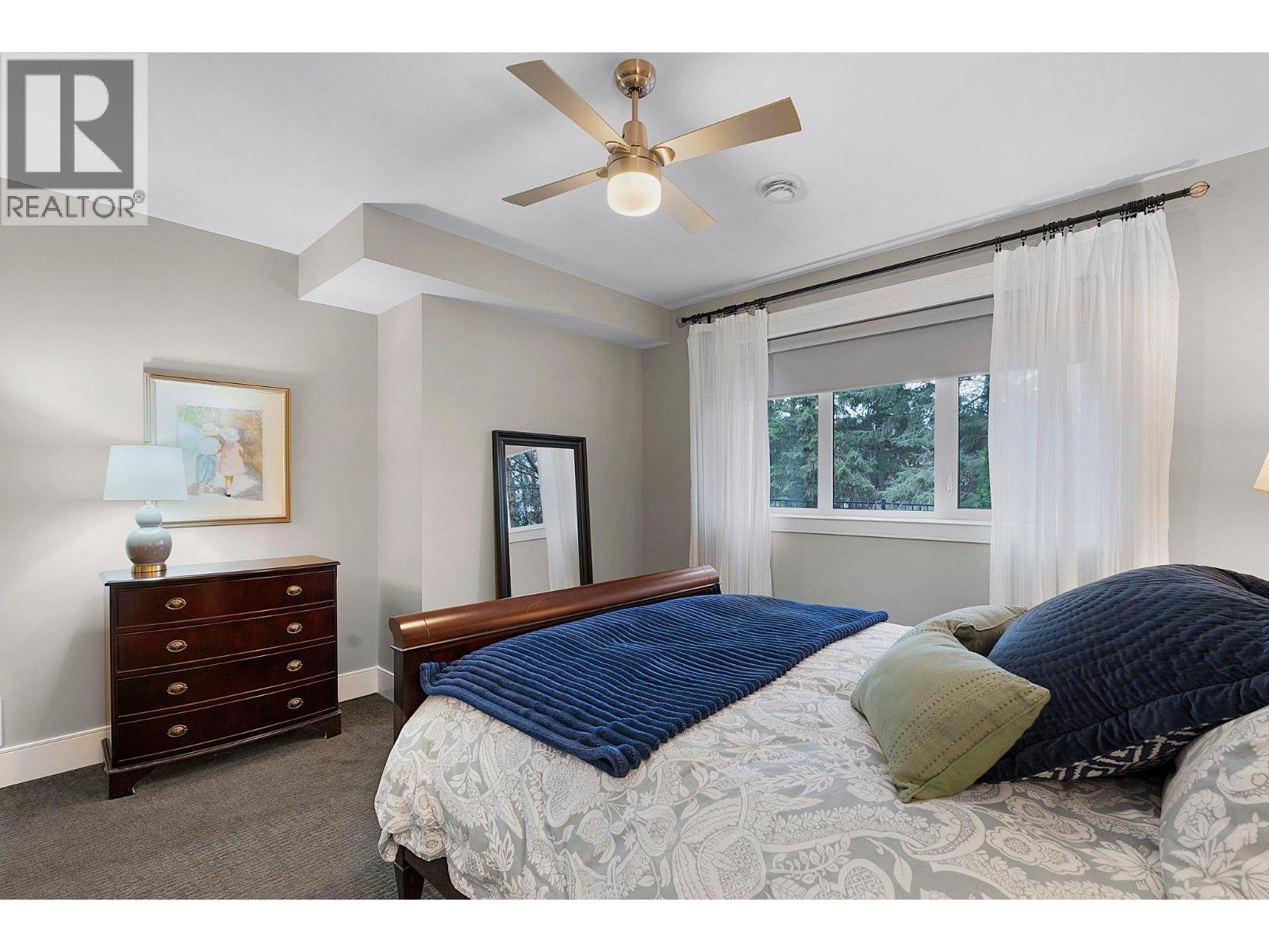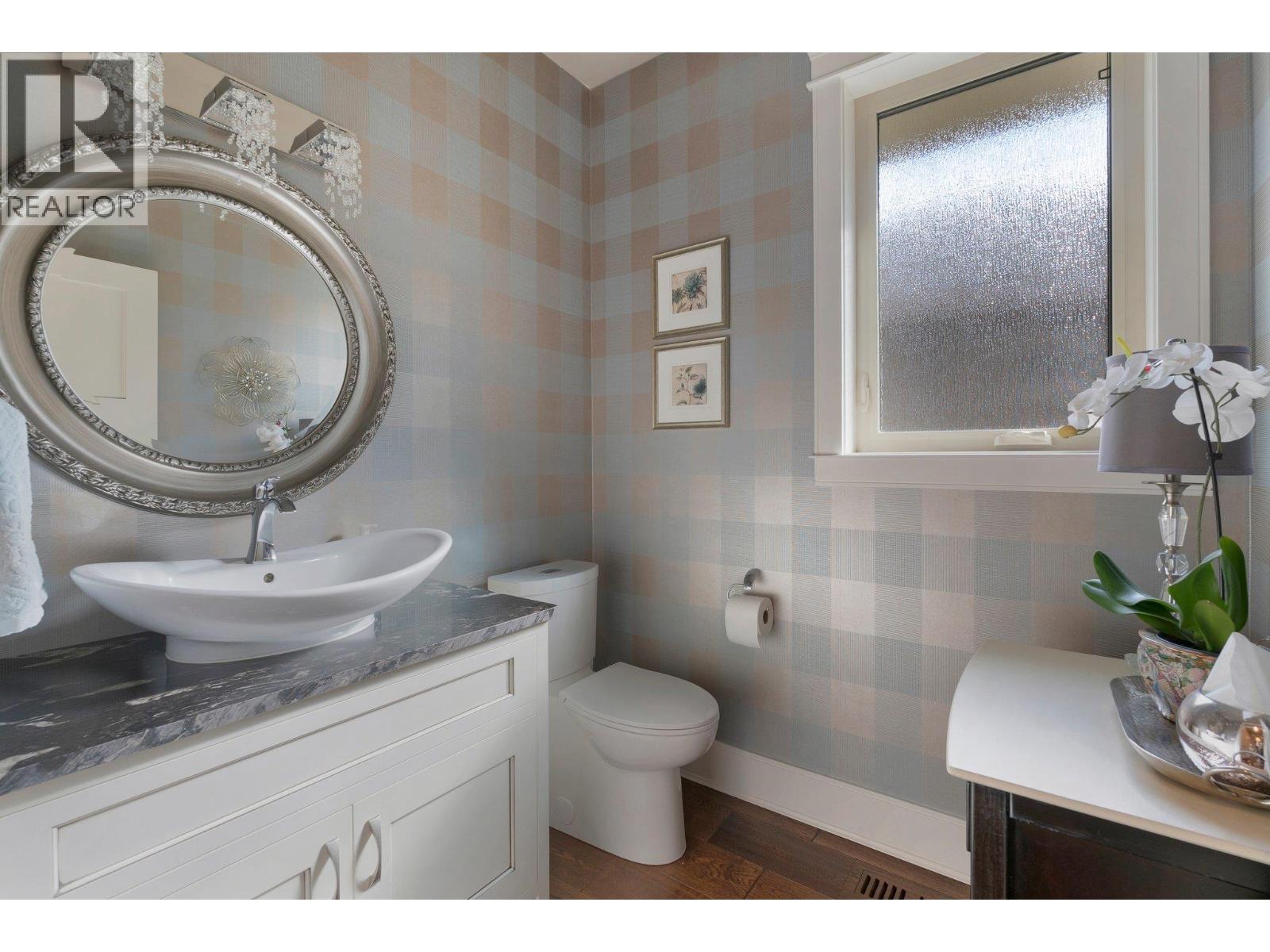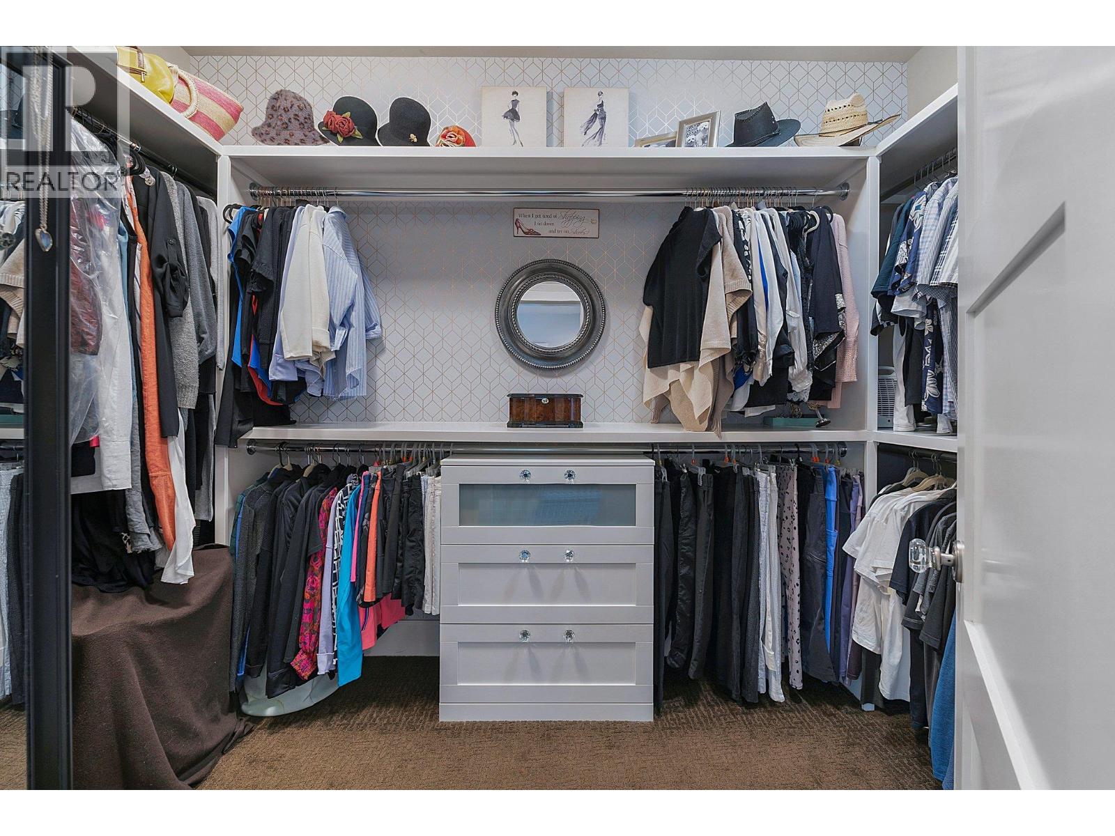 This immaculate walkout rancher is located on one of the most coveted streets in the prestigious Gallaghers Canyon golf community. Backing onto peaceful greenspace, this 3,260 sq.ft. home blends timeless design with modern upgrades. The bright open kitchen features quartz countertops, Wolf gas range, wall oven, wine and beverage fridges, and large island. It opens to an elegant living room with gas fireplace and built-ins, flowing into a formal dining area under coffered ceilings. Step outside to the expansive private balcony—perfect for morning coffee or warm summer evenings.The main floor includes a spacious primary suite with ensuite bath and walk-in closet, a stylish front office with bold designer wallpaper, powder room, and laundry off the garage.The lower walkout level offers two generous bedrooms, full bath, rec room with full wet bar and fireplace, home gym, plenty of room for storage and french door access to a landscaped yard with covered patio. Additional features: solar panels (near Net Zero utilities), dual-zone heating, built-in speakers, electric blinds, and an oversized double garage. Gallaghers is a true lifestyle community where you can drive your golf cart to the clubhouse, fitness centre, indoor pool, tennis courts, or either of the two championship courses. Resort-style living just minutes from all Kelowna amenities. (id:6770)