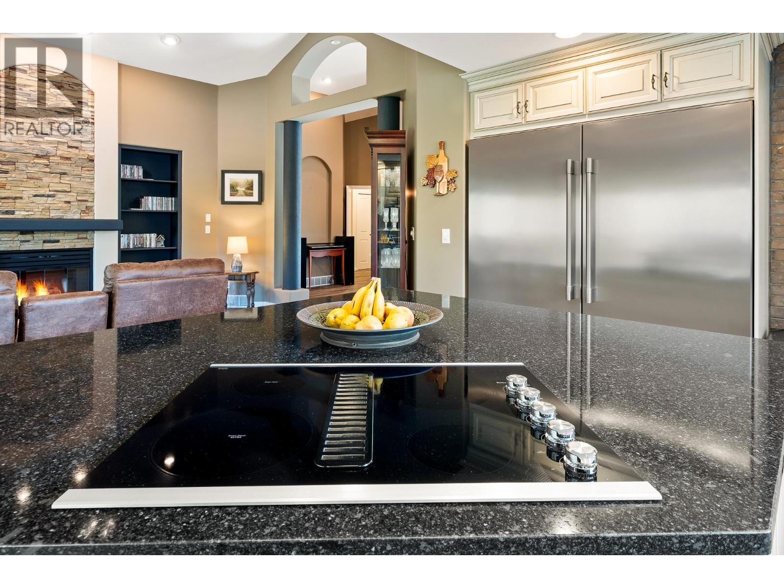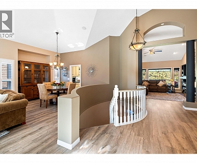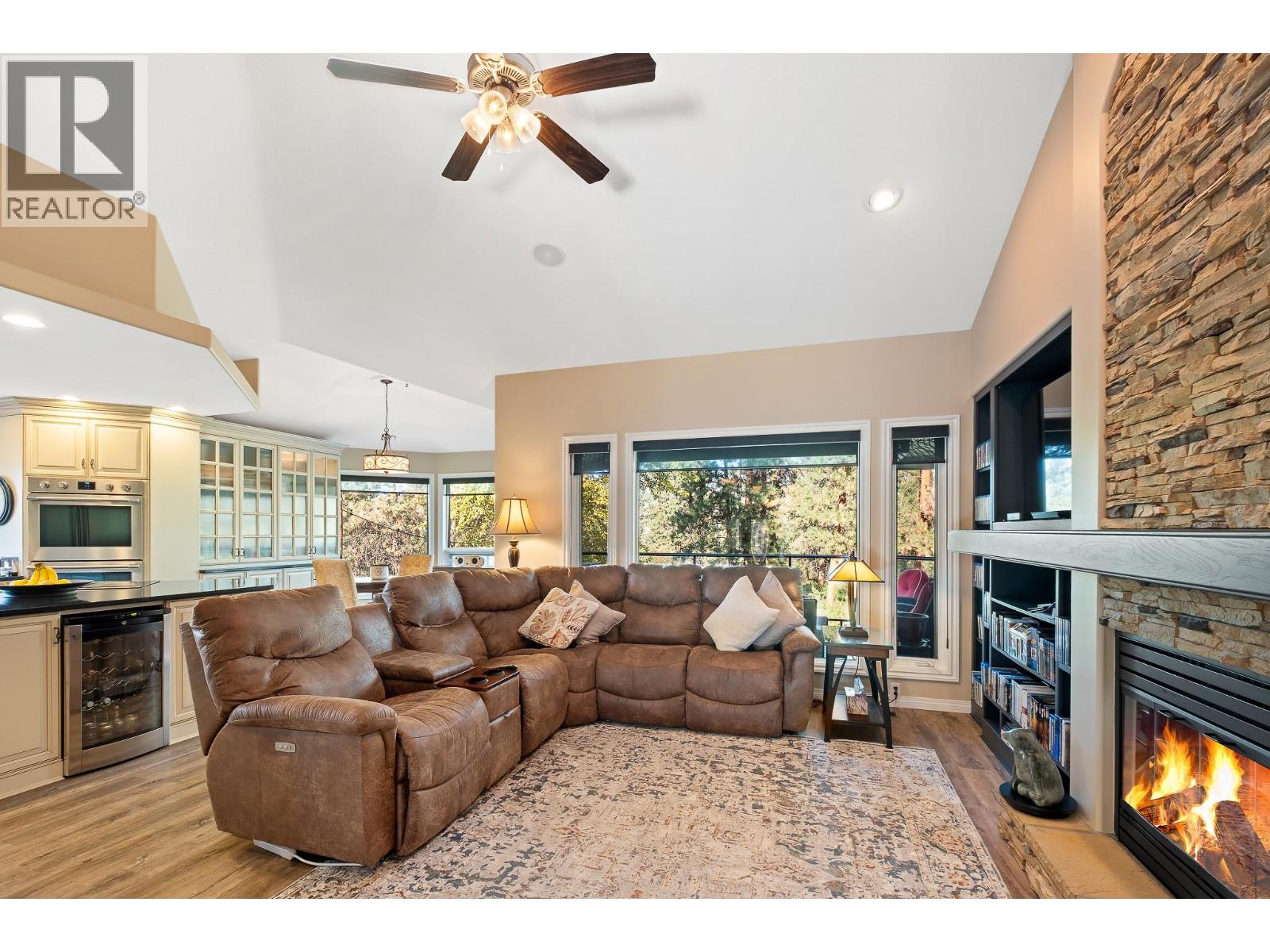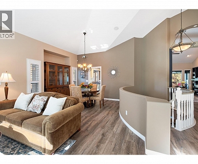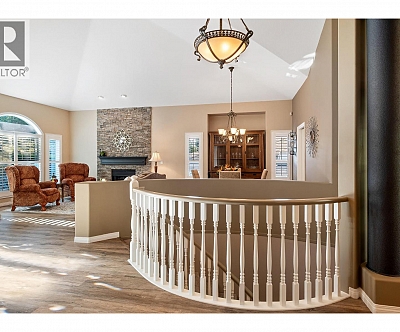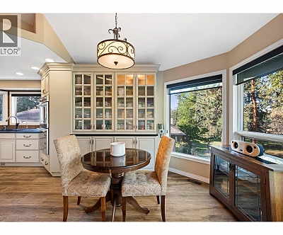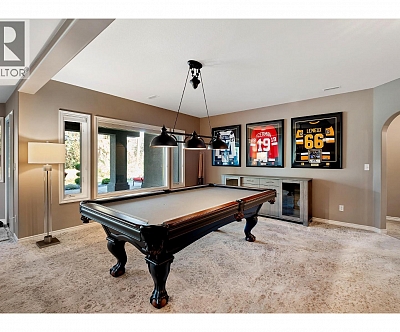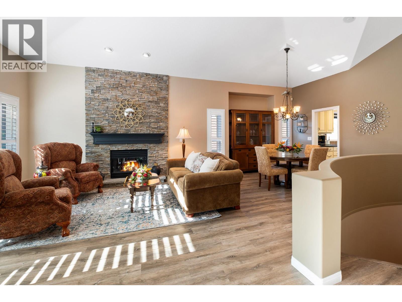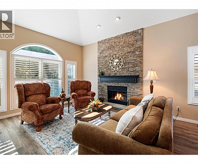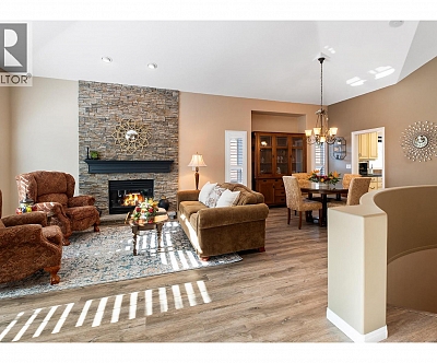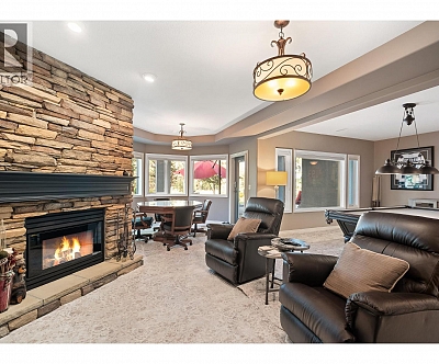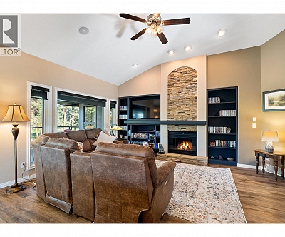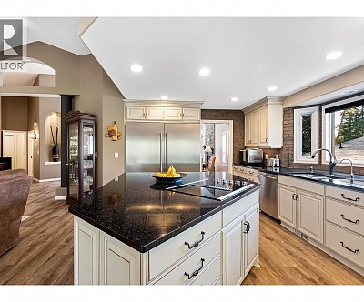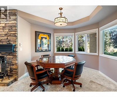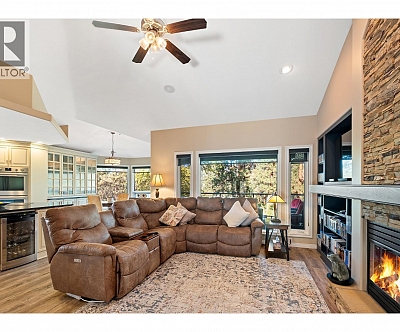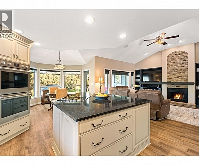 Elegant, warm, and thoughtfully designed, this extensively renovated Gallaghers Canyon home sits on the 2nd hole, offering a family home as elevated as its views. Every detail has been professionally and meticulously updated to create a home that is both inviting and move-in ready. With 3 bedrooms, 3 bathrooms, and 3 fireplaces, the layout is ideal for both everyday living and entertaining. Enjoy mornings on the expansive upper deck off the kitchen and family room, or host friends on the stunning walk-out stone patio with tranquil fountain. The kitchen shines with large granite counters, abundant storage, 2024 appliances, Frigidaire side by side fridge & freezer, black cooktop, and double ovens. The spacious primary suite features deck access, ensuite with a new quartz counter, and frameless shower. The lower level showcases two bedrooms, full bath, 609 sq. ft. of storage, a cozy family room with fireplace, bar area and Brunswick Greenwood pool table for game nights. The heated garage features epoxy flooring topped with half-inch rubber wall-to-wall for comfort and durability. Some of the many updates include a 50-year roof warranty, new HVAC, plumbing, hot water tank, flooring, garage door, irrigation, and landscaping. Nothing to do but move in and enjoy the lifestyle—steps from 2 golf courses, indoor swimming pool, fitness centre, walking trails, and a vibrant community. (id:6770)