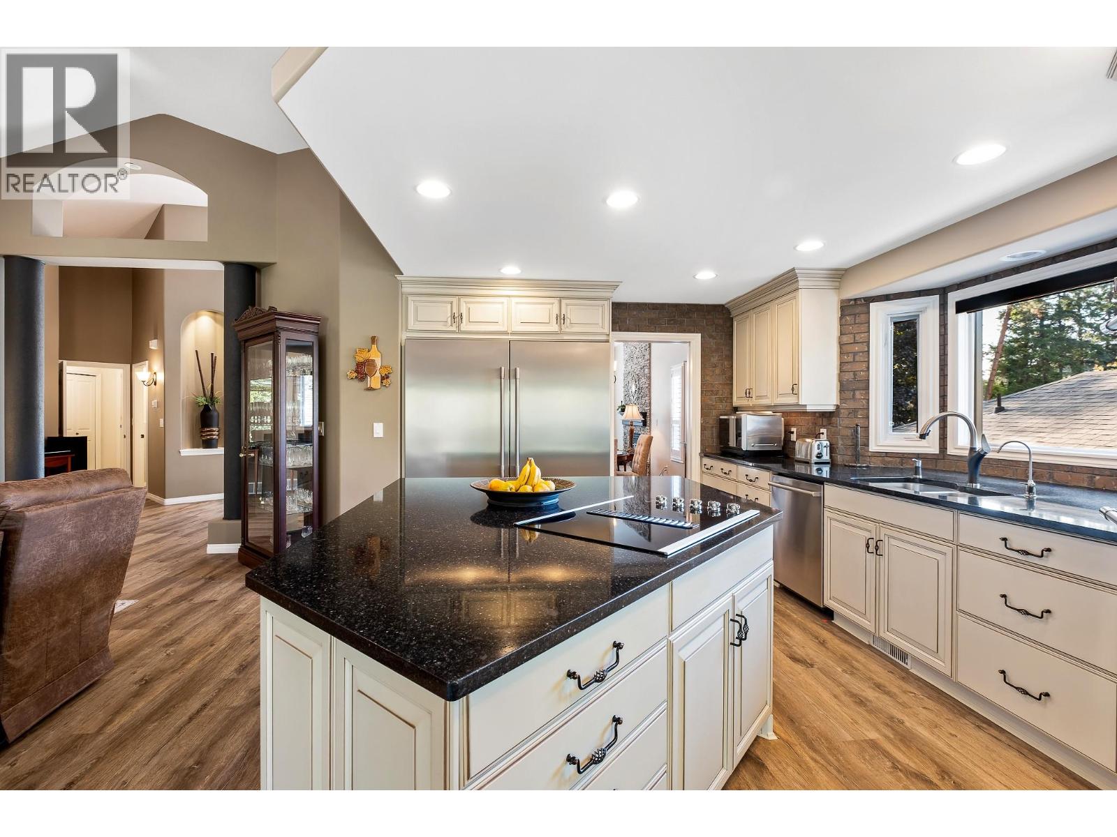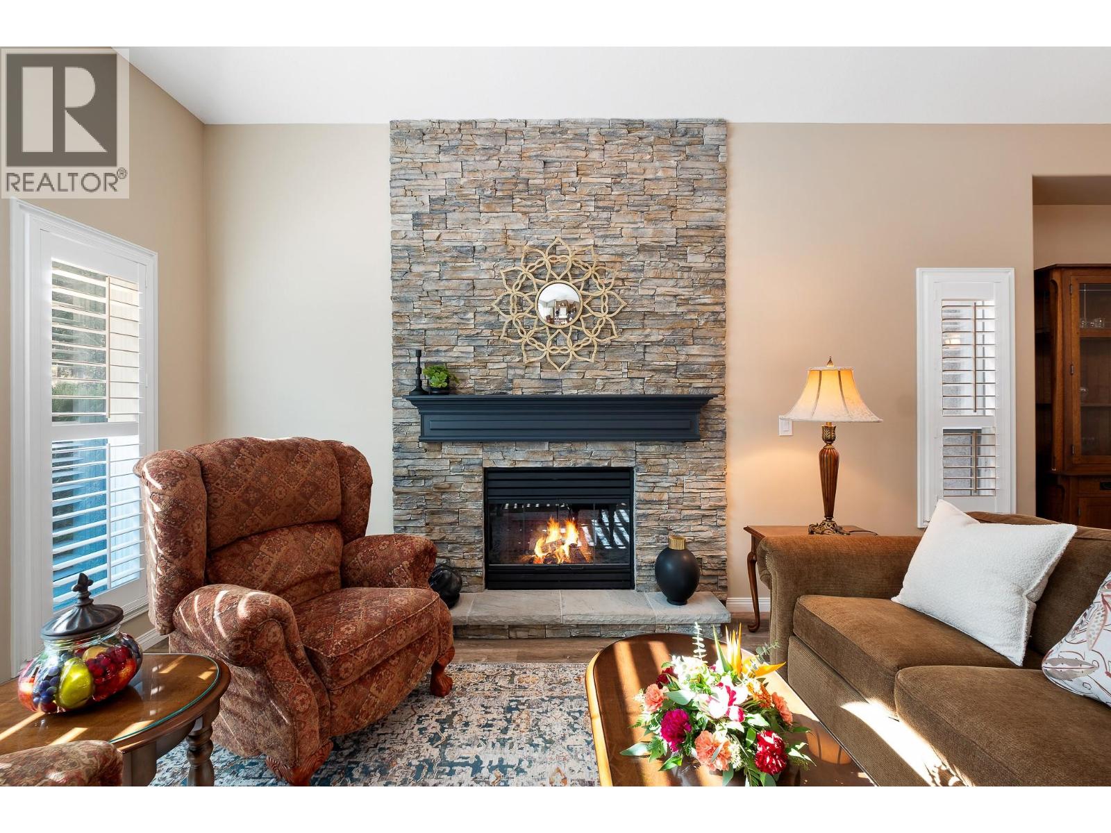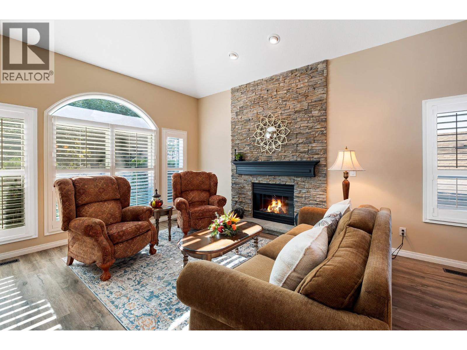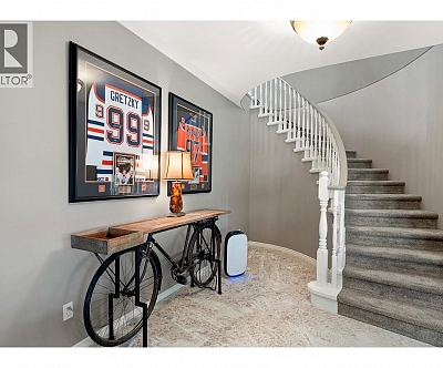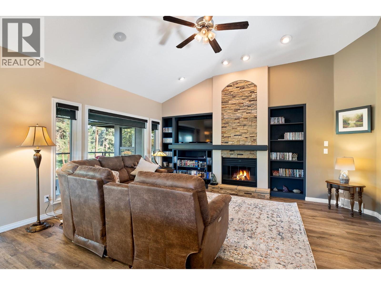 Elegant, warm, and thoughtfully designed, this extensively renovated Gallaghers Canyon home sits on the 2nd hole, offering a family home as elevated as its views. Every detail has been professionally and meticulously updated to create a home that is both inviting and move-in ready. With 3 bedrooms, 3 bathrooms, and 3 fireplaces, the layout is ideal for both everyday living and entertaining. Enjoy mornings on the expansive upper deck off the kitchen and family room, or host friends on the stunning walk-out stone patio with tranquil fountain. The kitchen shines with large granite counters, abundant storage, 2024 appliances, Frigidaire side by side fridge & freezer, black cooktop, and double ovens. The spacious primary suite features deck access, ensuite with a new quartz counter, and frameless shower. The lower level showcases two bedrooms, full bath, 609 sq. ft. of storage, a cozy family room with fireplace, bar area and Brunswick Greenwood pool table for game nights. The heated garage features epoxy flooring topped with half-inch rubber wall-to-wall for comfort and durability. Some of the many updates include a 50-year roof warranty, new HVAC, plumbing, hot water tank, flooring, garage door, irrigation, and landscaping. Nothing to do but move in and enjoy the lifestyle—steps from 2 golf courses, indoor swimming pool, fitness centre, walking trails, and a vibrant community. (id:6770)