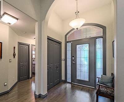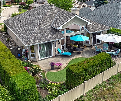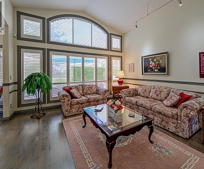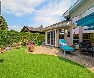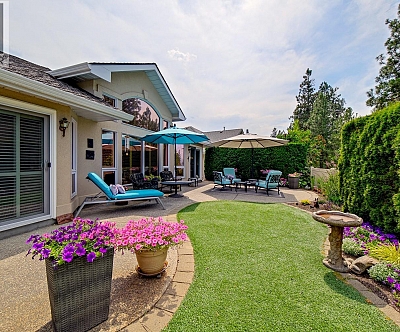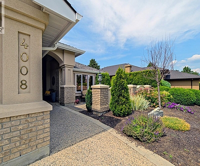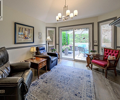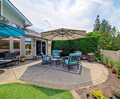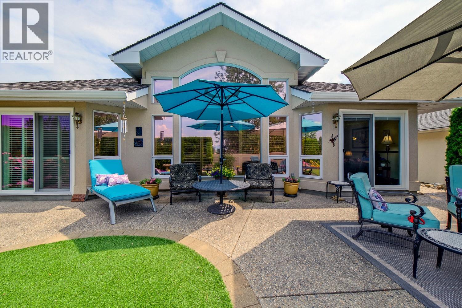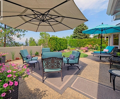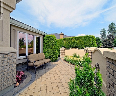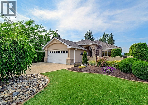 Luxury, Comfort and Lifestyle are the hallmarks of this beautiful 2 Bedroom + Den Rancher in Kelowna's exclusive Gallaghers Canyon community. This unique collection of homes modelled after the popular Del Webb communities in the US is set in and around the green fairways of both the highly regarded Canyon Championship course & The Pinnacle Executive golf course. Along with award winning golfing, this community offers a fantastic Amenity Center featuring an indoor saltwater pool, swirl pool, fitness facility, tennis courts, meeting rooms, woodwork shop, pottery, arts and crafts studio, and more! Beautiful trails for hiking and biking right at your door step as well. Entering this home into grand foyer with extra high ceilings, the first thing you will notice is the quality finishings and abundance of natural light from the many large windows. The chef's kitchen boasts high end stainless steel appliances, breakfast bar, apron farmhouse style sink, and plenty of counter and cupboard space. Cozy 2 way gas fireplace between the living room and flex space off of the kitchen - perfect for a breakfast nook or cozy sitting room. The king sized primary suite offers a walk in closet with built in drawers and shelving and a spa like ensuite. Access the private, outdoor oasis through sliding doors in the flex space or the primary bedroom. No lawn maintenance! If you are retired or working from home, why not enjoy the finest in lifestyle and surroundings the Okanagan has to offer. (id:6770)