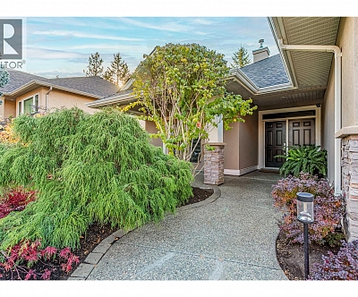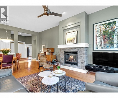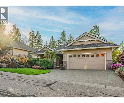 This beautifully maintained single-family home offers timeless style and a functional, flowing floorplan designed for comfort and connection. With 11-foot ceilings in the main living spaces and 9-foot ceilings throughout the rest of the home, including the lower level, the interior feels open and expansive. The main level features warm natural light, a large primary bedroom, den with french doors opening to a private patio and seamless transitions between living, dining, and kitchen spaces—perfect for both entertaining and everyday living. Enjoy two covered patios that blend indoor and outdoor living, ideal for relaxing or hosting guests while taking in the tranquil forest backdrop. Two gas fireplaces add warmth and ambiance, and the split bedroom design in the walkout lower level ensures privacy for family or guests. With over 450 sq. ft. of unfinished storage, there’s ample room for all your needs. Set on the quiet south side of Gallagher’s Canyon, this residence combines a peaceful natural setting with access to an exceptional lifestyle. At Gallagher’s Canyon, enjoy two golf courses, tennis courts, indoor pool, fitness centre, billiards, woodworking, yoga, and more. Experience the peace and tranquility of a country setting just minutes from city amenities. Gallagher’s Canyon is known for its vibrant community, offering opportunities to make friends easily and enjoy activities for every interest. Live the Okanagan lifestyle—refined, relaxed, and effortlessly connected. (id:6770)