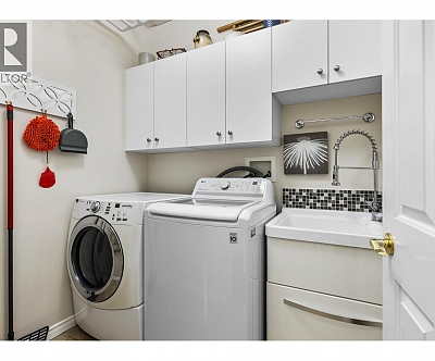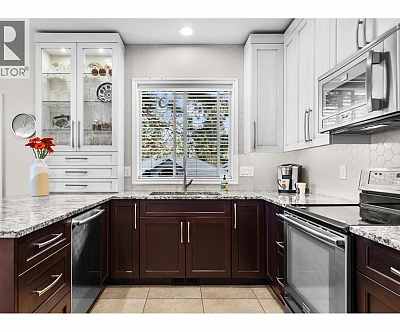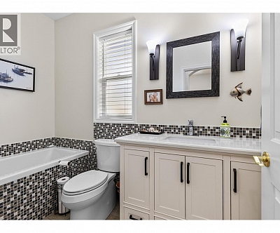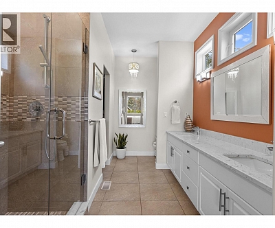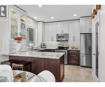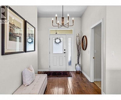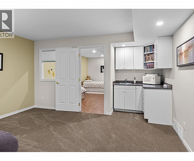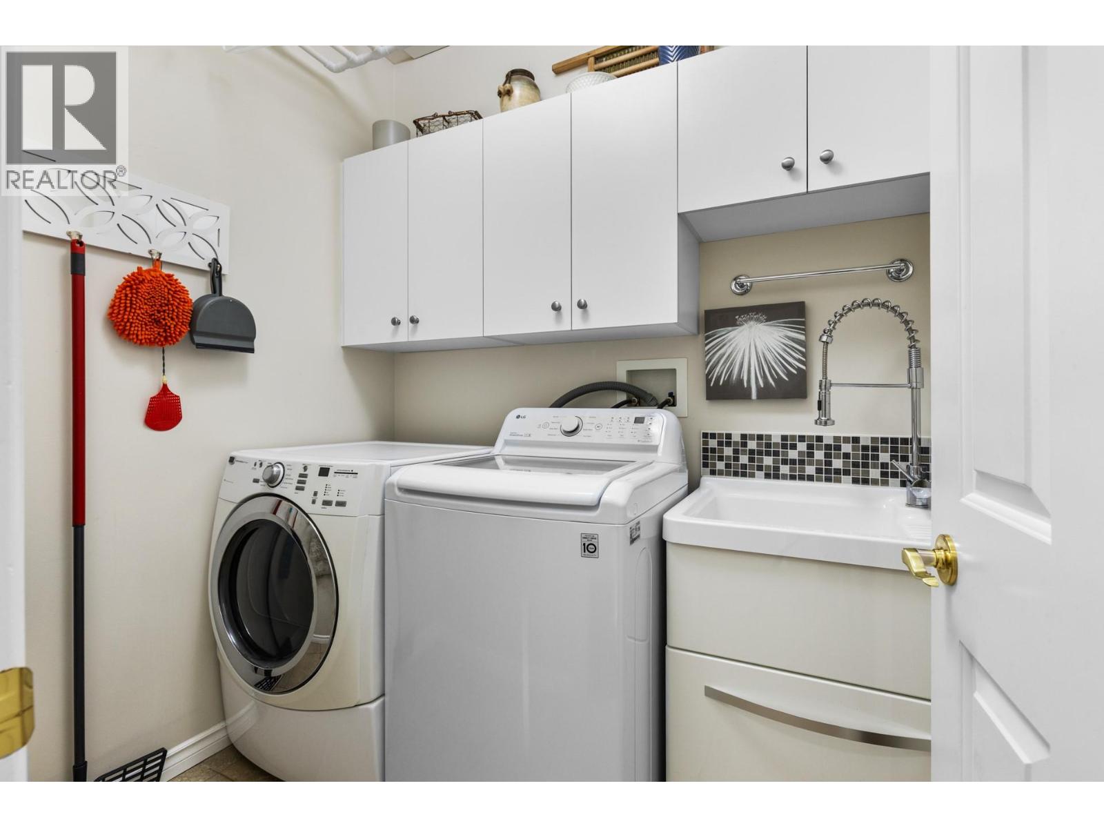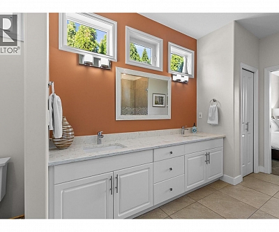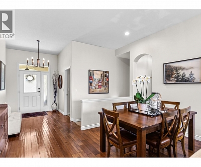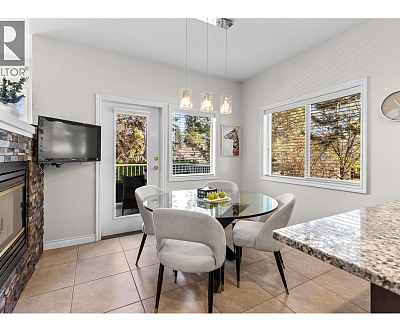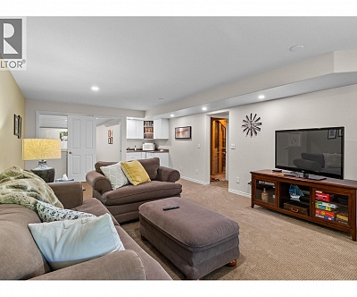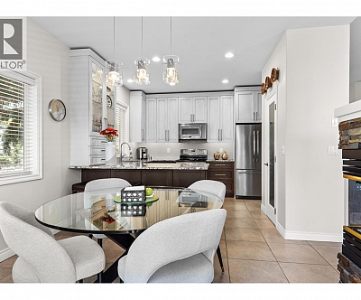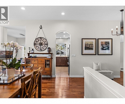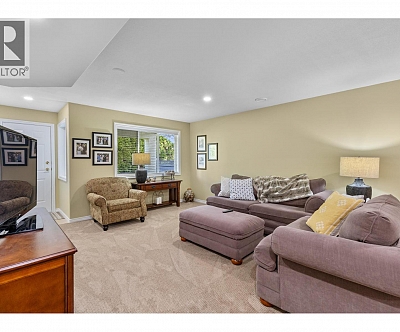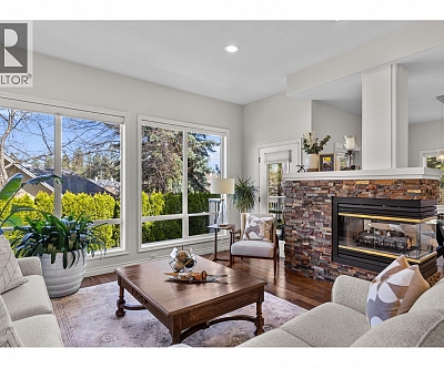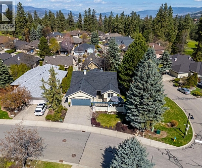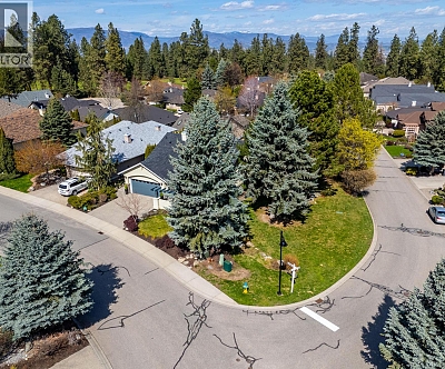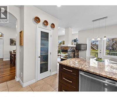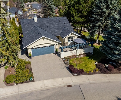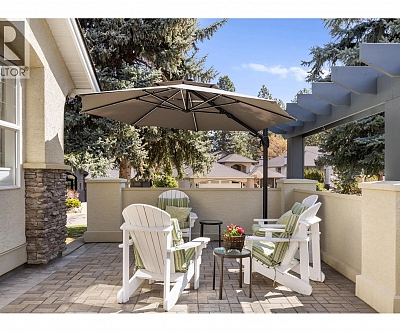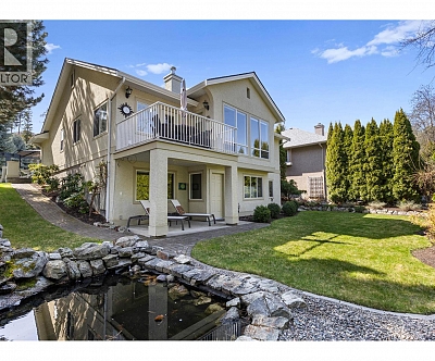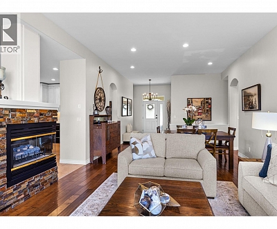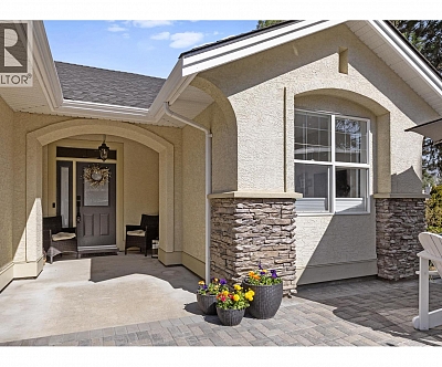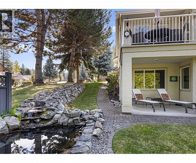 Beautiful Walkout Rancher in the Gallaghers Canyon Golf Community. From the moment you step inside, you’ll be captivated by the grand interior, featuring gleaming hardwood floors, soaring ceilings and large picture windows. The updated kitchen boasts stylish two-tone cabinetry, stainless steel appliances, a functional layout and a striking 3-sided gas fireplace. The living room is a sophisticated retreat, perfect for unwinding after a round of golf or hosting friends and family. The primary suite is complete with a spa-inspired ensuite, a massive walk-in tiled shower, and a generous walk-in closet. Also on the main level is a bright second bedroom and a convenient laundry room. Downstairs, the fully finished walkout lower level offers suite potential with a separate entrance, two additional bedrooms, a den/media room, a spacious family room, and a summer kitchen—ideal for guests or extended family. The outdoor living space is nothing short of spectacular. At the front, a large courtyard sets the tone for relaxed mornings & evening gatherings, while a tranquil water feature with a stream and pond adds to the peaceful ambiance. The backyard offers a lush greenspace, covered patio, and ample room to enjoy Okanagan’s beautiful seasons. Additional upgrades include a new exposed aggregate driveway, new asphalt roof, and a recently replaced hot water tank. Enjoy top-tier amenities including an indoor pool, whirlpool, fitness center, sports court, games room, club rooms, and library. (id:6770)