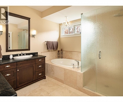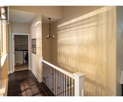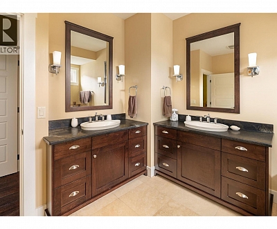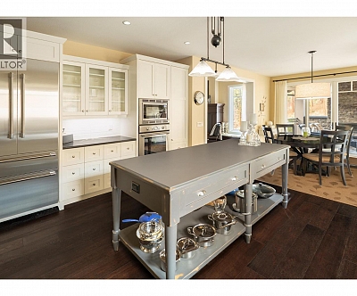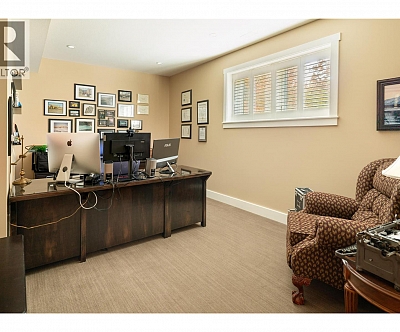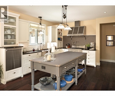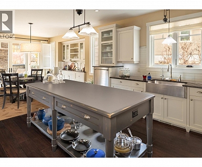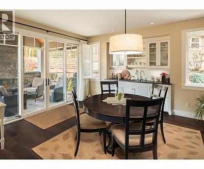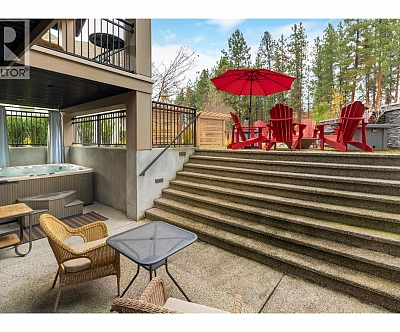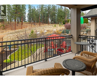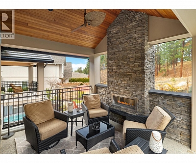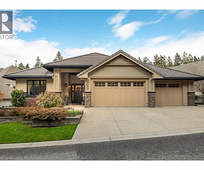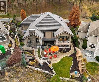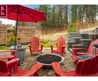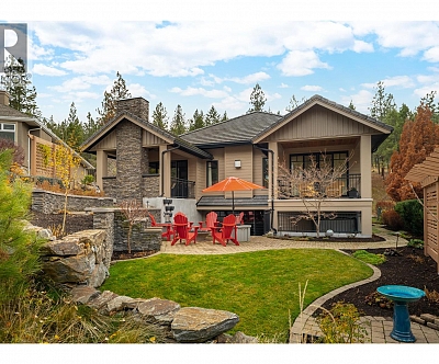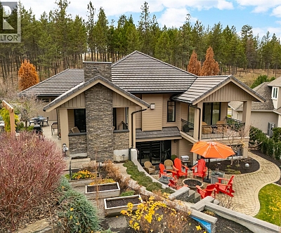 Privately positioned in an exceptionally quiet setting with no neighbours in front or behind, this thoughtfully designed residence is surrounded by mature trees and meticulous landscaping, offering a rare sense of seclusion. Built with longevity and quality in mind, the FireSmart Hardie Board exterior, concrete tile roof, Loewen windows, and handcrafted fir front door set the tone for the level of finish carried throughout. Engineered hardwood flooring, solid core doors, and all-wood casings create a cohesive, timeless interior. The kitchen is the heart of the home, featuring Brazilian soapstone countertops, solid maple cabinetry, an expansive custom island, six-burner gas range, Thermador appliance package, and a dedicated beverage centre. Indoor-outdoor living is seamless with a covered upper deck complete with gas fireplace and BBQ hookup. The walk-out lower level offers impressive ceiling heights, a custom wet bar, gas fireplace, theatre room, and access to a private patio with Beachcomber hot tub and Restoration Hardware fire bowl. A hybrid heat pump/gas furnace, EV-ready 3 car garage, grade-level windows, and thoughtful accessibility features further enhance this exceptional home designed for comfort, privacy, and everyday enjoyment. Set within the prestigious Gallaghers Canyon community, residents enjoy an unmatched lifestyle with world-class golf, scenic walking trails, and a strong sense of community—just minutes from Kelowna’s amenities. A rare combination of privacy, craftsmanship, and lifestyle — this is a must-see to be fully appreciated. (id:6770)