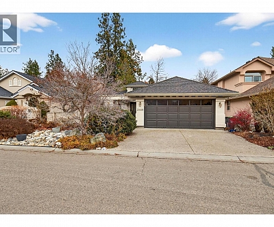 Overlooking the lush 2nd fairway, this impeccably cared-for rancher offers an elevated lifestyle in the heart of Gallagher’s Canyon. Designed for both elegance and ease, the two-bedroom home showcases soaring ceilings, dual sided gas fireplace, and a bright, flowing floor plan that seamlessly connects indoor and outdoor living. Step outside to a private patio with serene golf course vistas—perfect for hosting friends or enjoying quiet moments surrounded by nature. The spacious kitchen features stone countertops, custom cabinetry, and an open connection to the dining and living areas. The spacious primary suite is a true sanctuary, highlighted by expansive windows, direct access to the patio, a walk-in closet, and a luxurious ensuite complete with a deep soaker tub, walk-in shower, and dual sinks. Additional highlights include a separate family room, full guest bathroom, laundry room, and a double garage. Living in Gallagher’s Canyon means embracing an unparalleled resort-style lifestyle with access to two championship golf courses, tennis courts, indoor pool, fitness centre, hot tub, games room, art studios, and miles of scenic walking trails. All of this, set within a welcoming community and just 15 minutes from downtown Kelowna. (id:6770)
