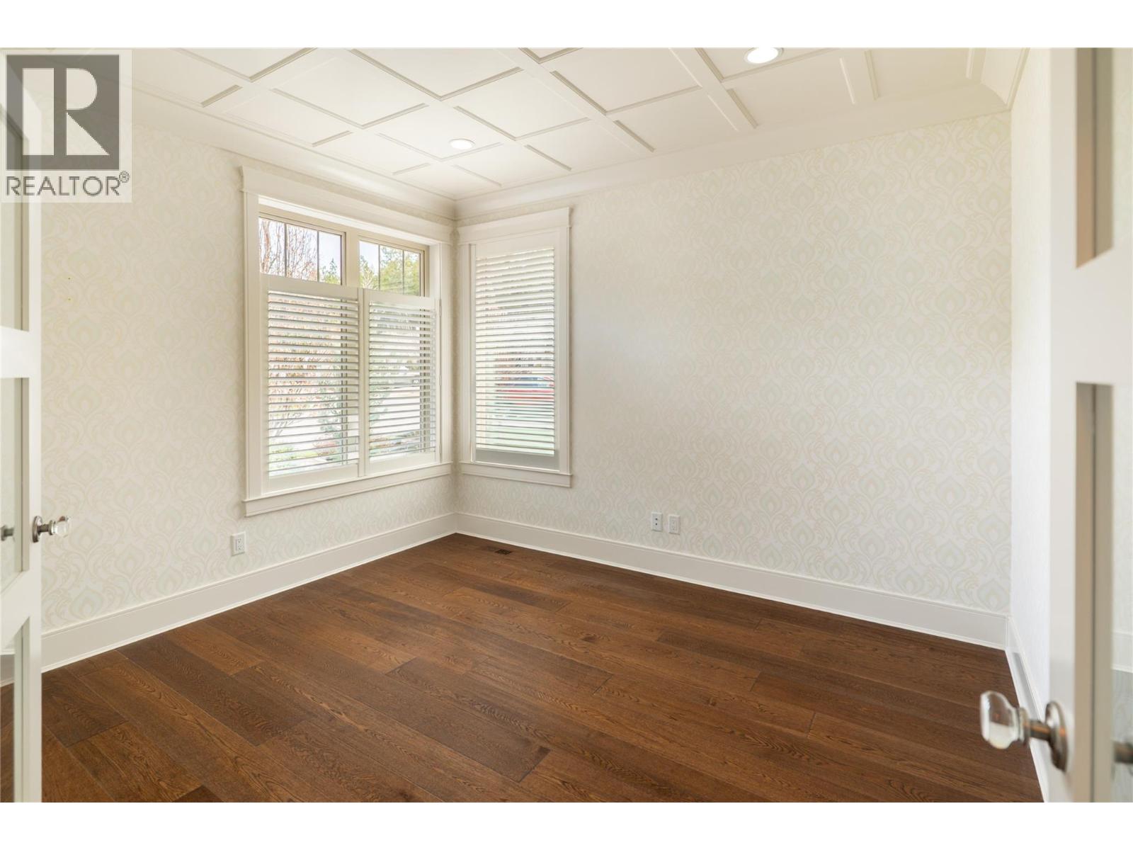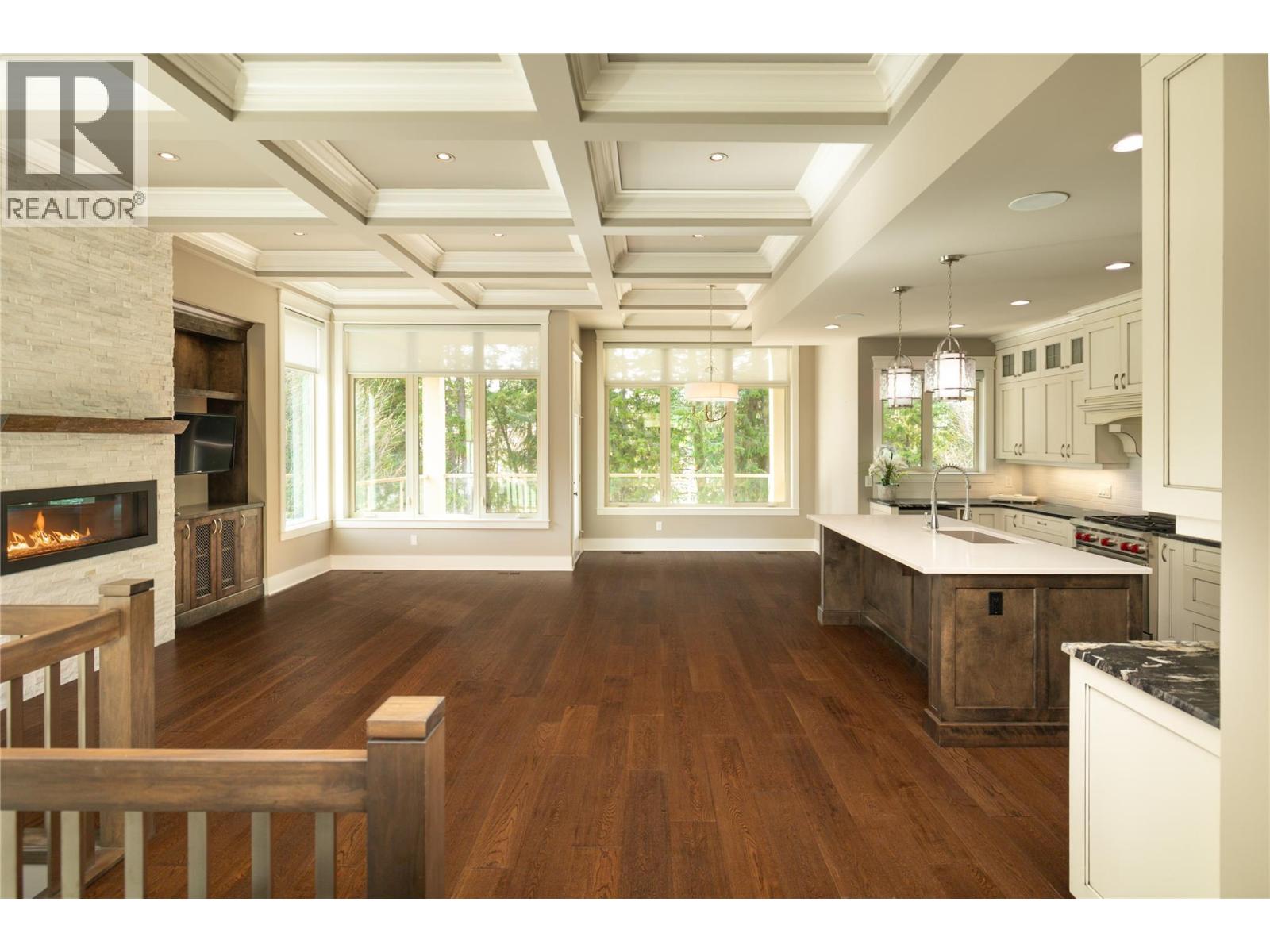 Set within the sought-after community of Gallaghers Canyon, this beautifully finished home offers timeless design, thoughtful upgrades, and a private setting surrounded by mature greenery. Striking curb appeal with stone and Hardie siding, a covered entry, and a charming front patio welcomes you in. Inside, tall ceilings and coffered detailing create a refined feel throughout. The kitchen blends style and function with classic white cabinetry, large island, Wolf range, and walk-in pantry. The living room centres around a floor-to-ceiling stone fireplace with custom built-ins, while a main floor office/den with custom ceiling detail adds versatility. The primary suite is a true retreat with crown moulding accents, designer wallpaper, and a well-appointed ensuite featuring dual sinks, a soaker tub, and walk-in shower. Cohesive cabinetry and finishes carry throughout the home. The lower level is designed for entertaining, offering a spacious recreation area, family room with built-ins, and a stunning wet bar with storage. Walk out to a covered patio overlooking private, lush greenspace. Two additional bedrooms and a full bathroom complete the space. Low-maintenance landscaping, water feature in the front, built-in speakers, and electric blinds add to the home’s comfort and convenience. Enjoy the Gallaghers lifestyle with access to golf, fitness centre, indoor pool, tennis courts, clubhouse, and scenic walking trails—just minutes from everyday amenities. (id:6770)